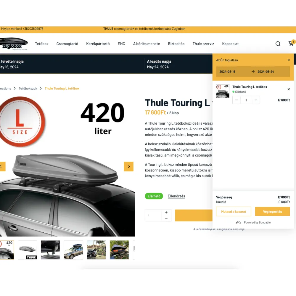 Amennyiben elérhető az Ön által keresett felszerelés, a rendszer lehetővé teszi, hogy egy kattintással a kosárba tegye. Ezután csak az adatokat kell kitölteni, és a foglalás bekerül hozzánk ellenőrzésre.