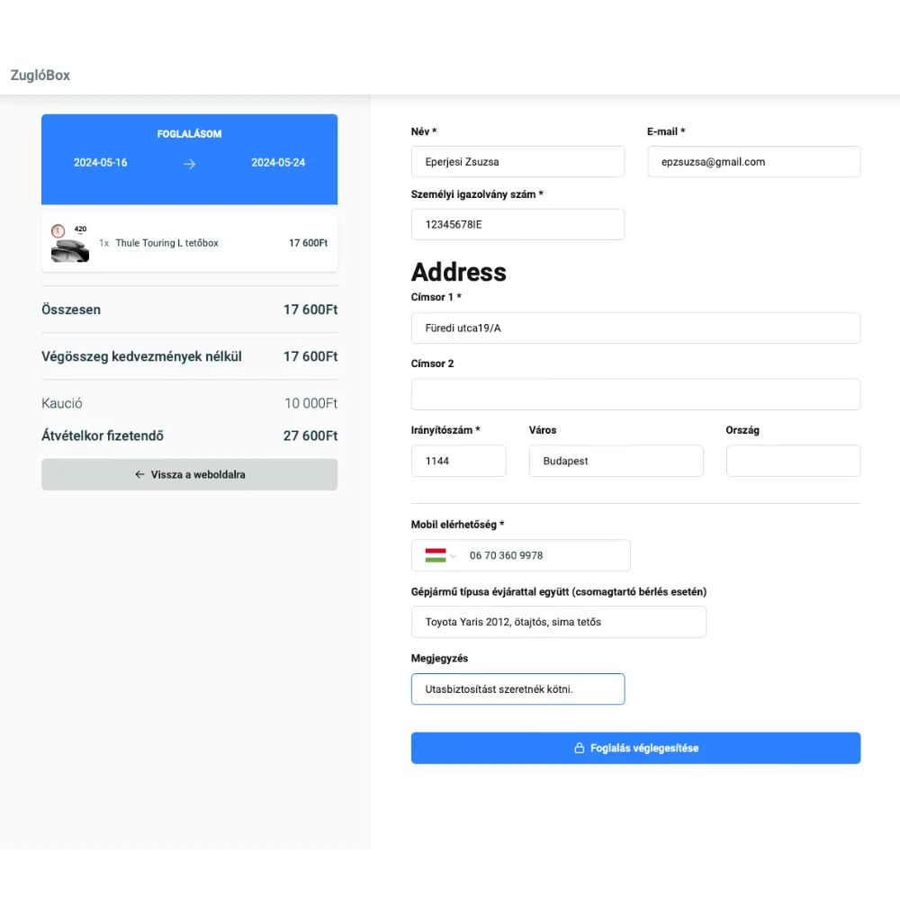 A beérkezett foglalás alapján ellenőrizzük az adatokat, beállítjuk az esetleges kedvezményeket, majd e-mailben visszaküldjük a véglegesített szerződést.
